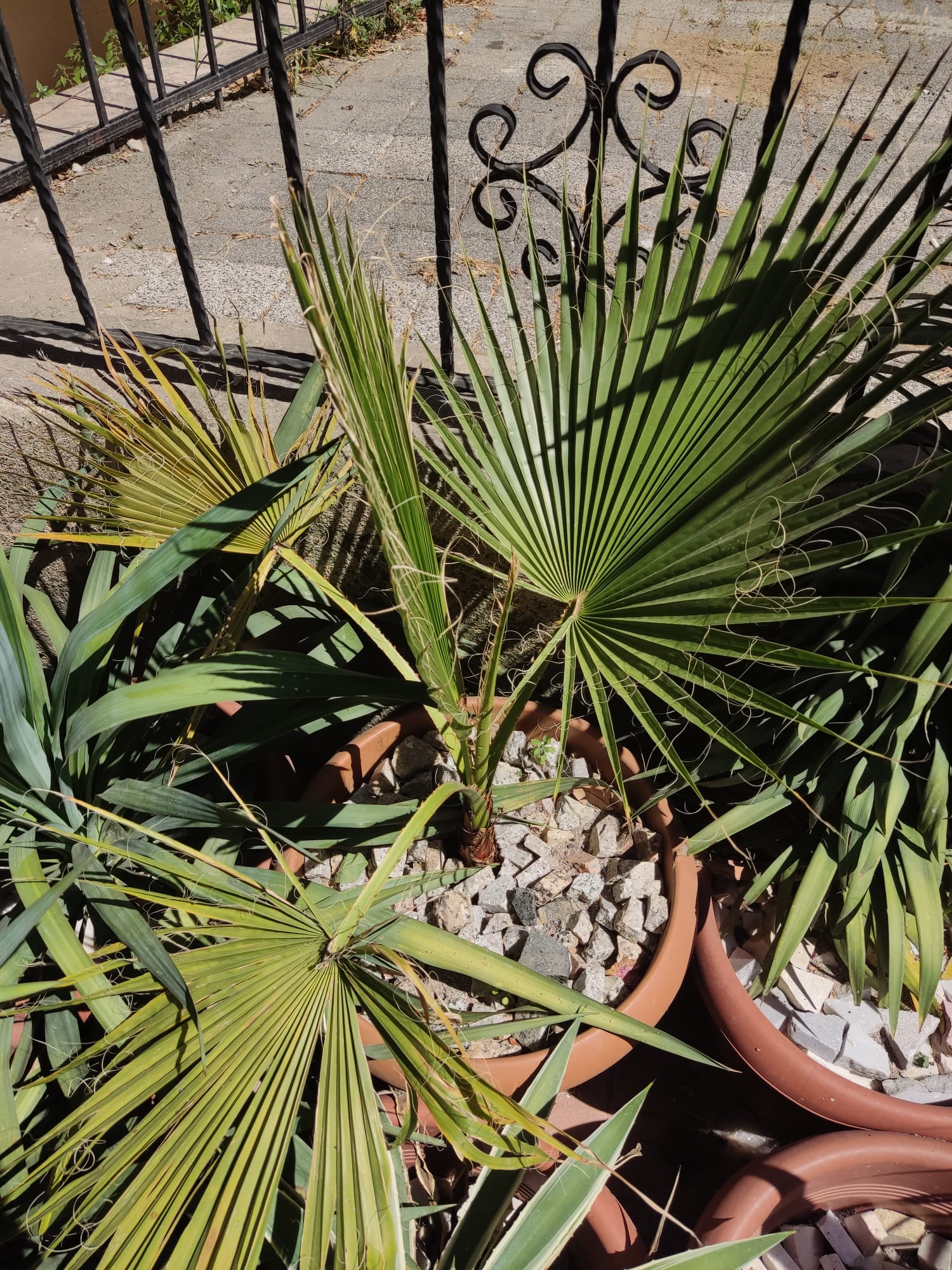 Esta palmera es una pijis pijis, si me paso mas de una semana sin regarla abundantemente pierde hojas. Por ahora lo que voy a hacer es moverla mas adentro a una zona donde da menos sol, que pasará? pues en invierno se parará mas y tardará mas en arrancar seguramente pero no es que yo quiera que crezca mucho y por otro lado, es vital que sea mas resistente al sol y no vaya perdiendo hojas como loca porque si. Mañana sábado voy a redistribuir las plantas, ya no es sostenible como están ahora.