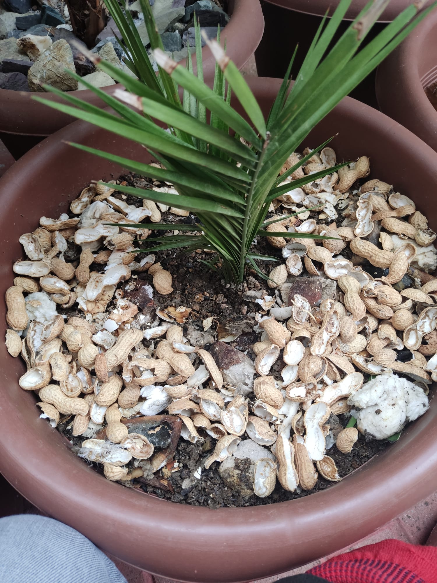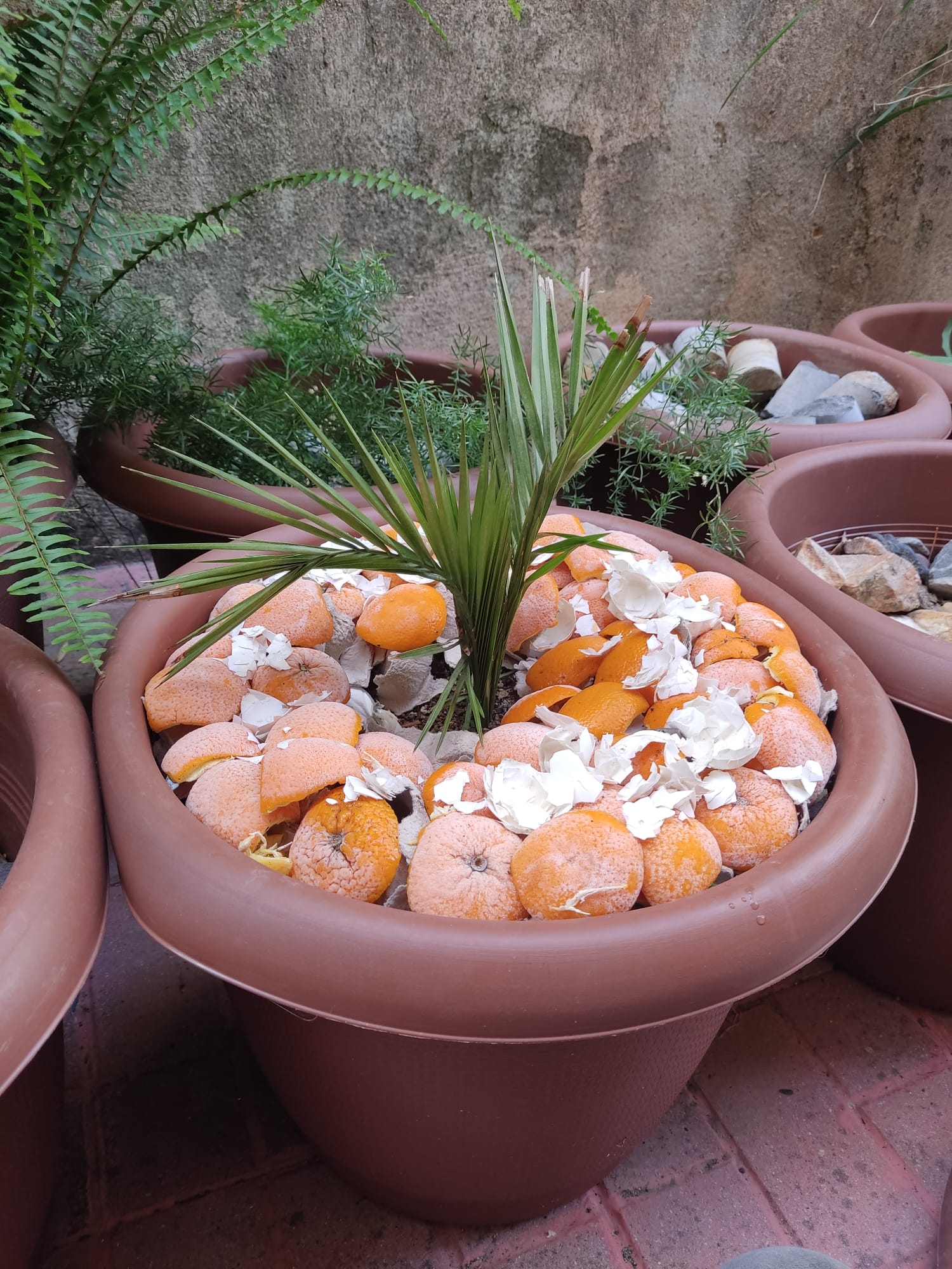 Esa maceta tiene muchísimas lombrices y muy grandes entonces creo que debo ponerle muchisimos restos siempre.... además es que creo que es lo mejor para la palmera.