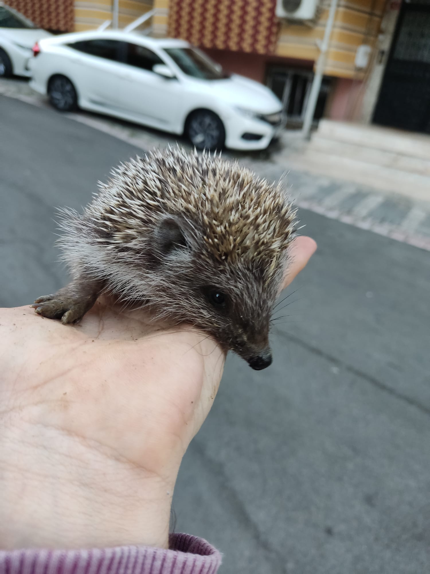 Pero al rato también en mi calle en frente de mi casa me encuentro un erizo bebé