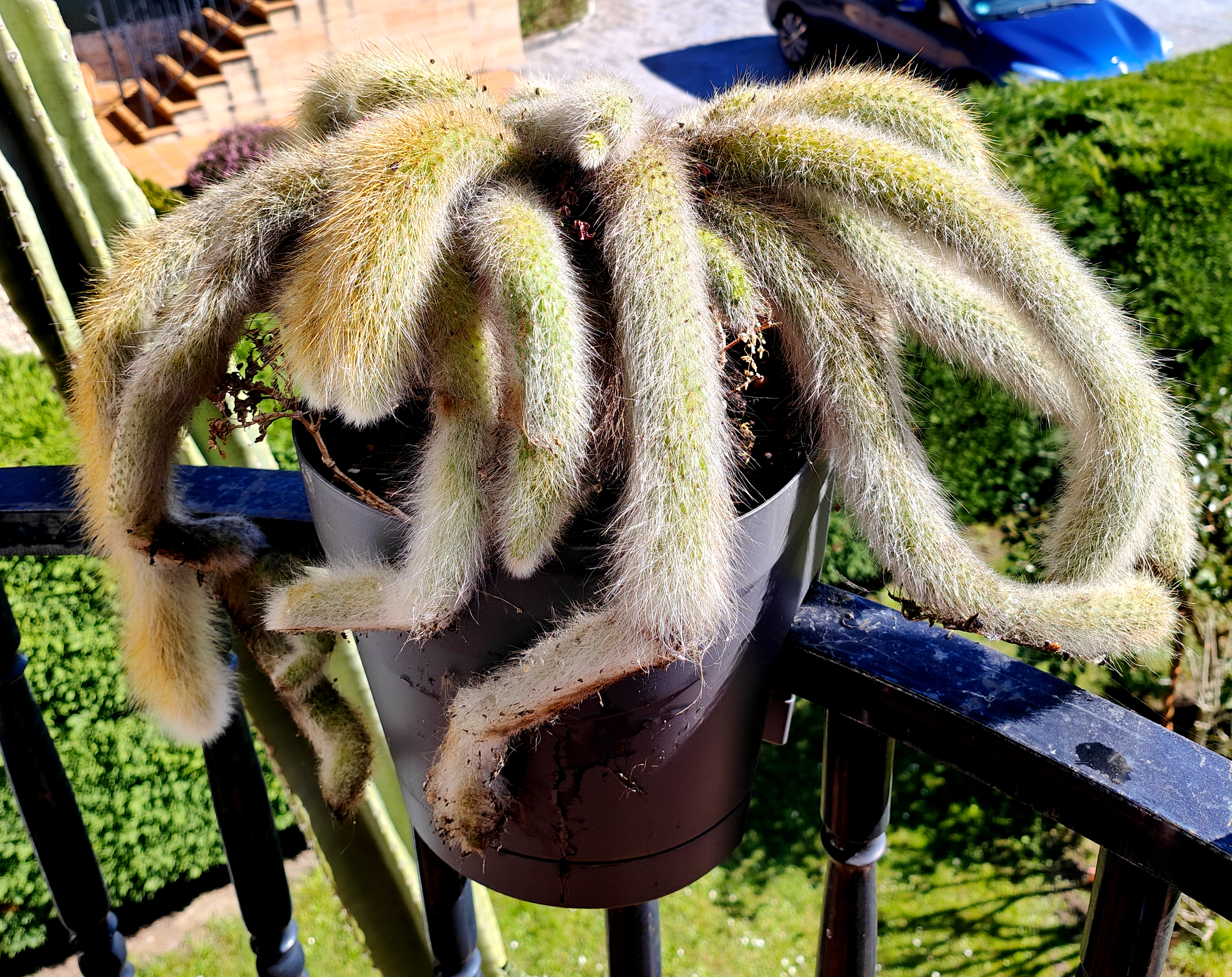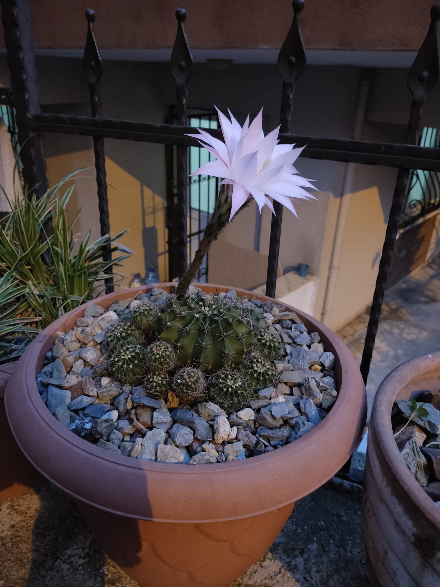 Muy pero que muy planta del dia para mi hoy fue esta Echinopsis eryesii que abrió hace un rato y las fotos son malas porque está dificil de alcanzar igualmente es la primera flor que echa bajo mi jurisdicción, esta planta me la ha regalado con ese tamaño el presidente de la comunidad de vecinos.