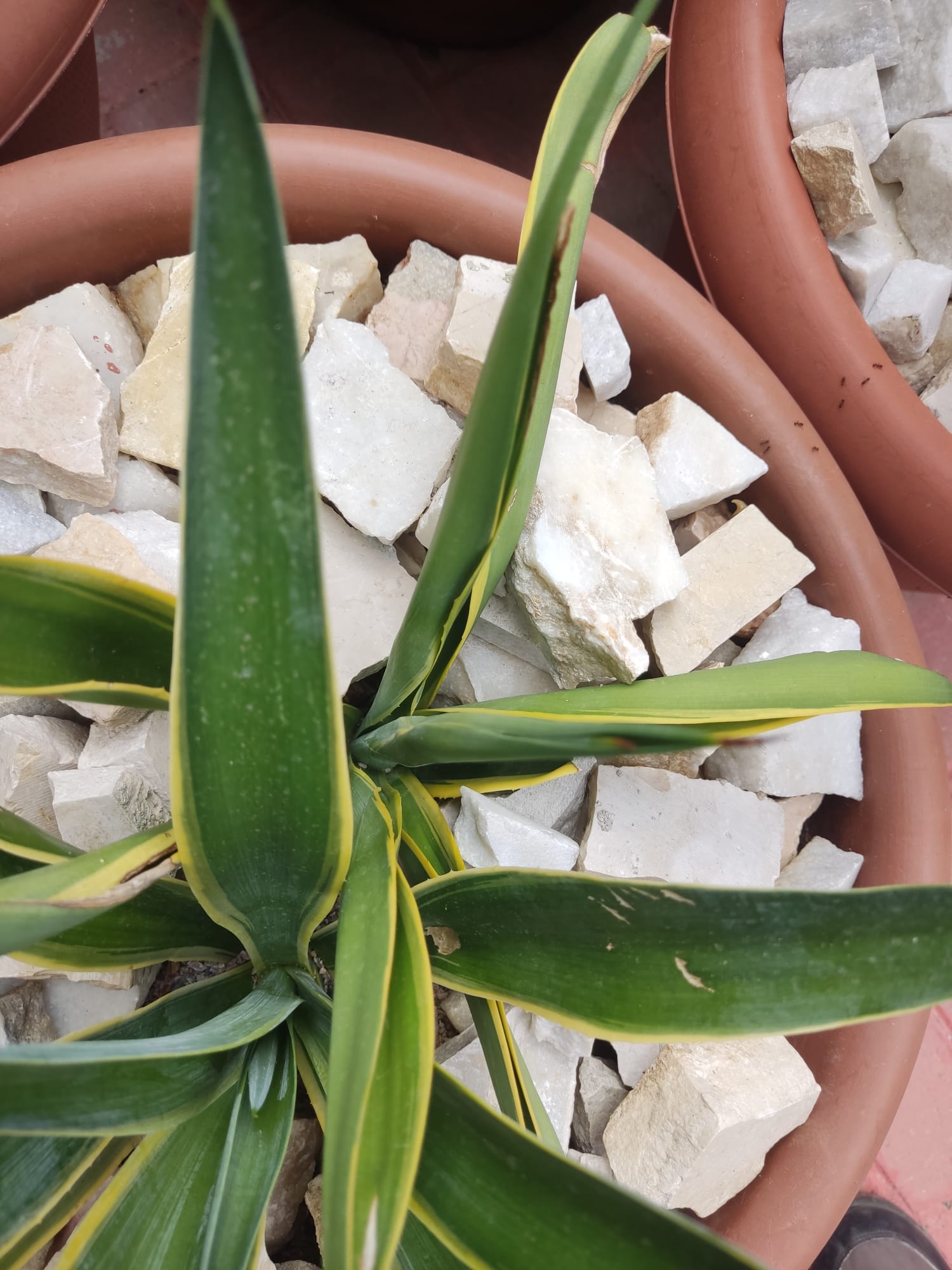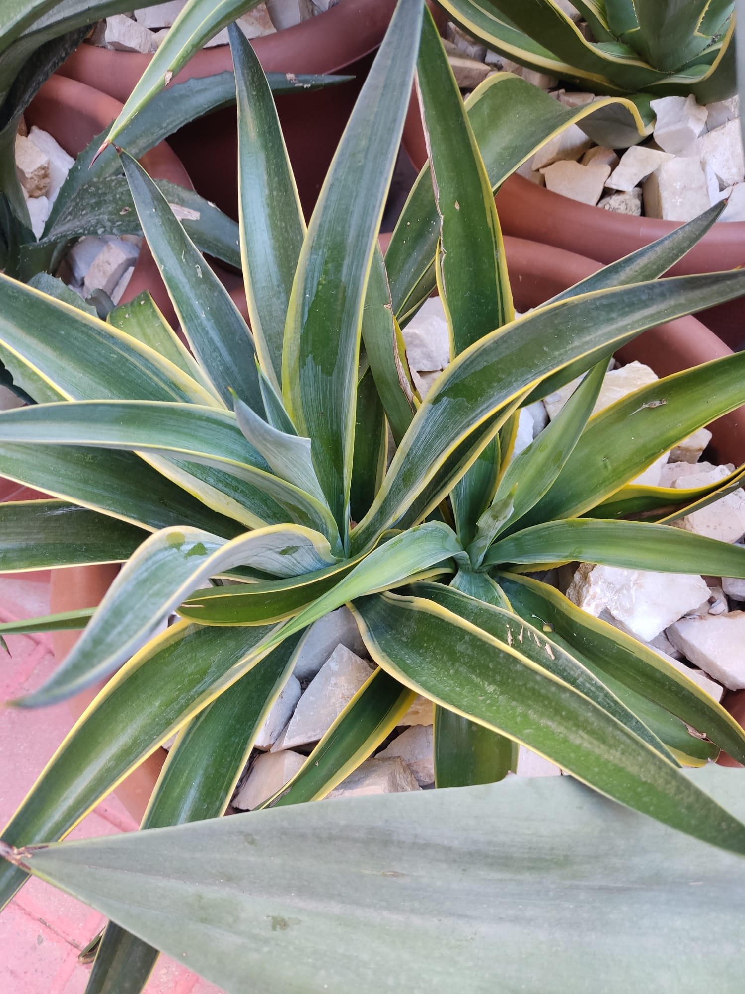 Es la misma !! la variegata !!!! justo hoy me he dado cuenta de que ya la tengo, y parece que está bien y sana. El año que viene la pondré en una maceta grande de 40 pero ya directamente arriba del todo para no hacer lo de echarle tierra que no sirve con estas plantas.