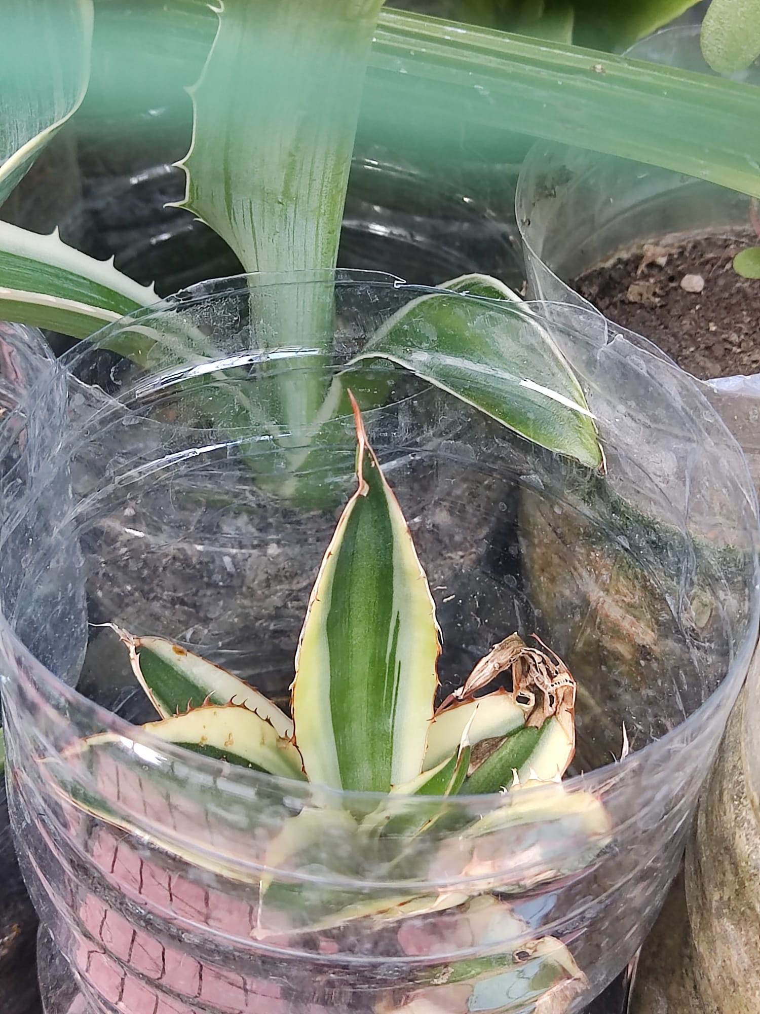 Estos dos son la misma planta eran dos brotes uno con aspecto adulto y otro con aspecto juvenil, pero se han desarrollado super poco, quizás por la pobreza de la tierra y que por ser pequeños no les puse mucha cosa de basura. Creo que a estos los voy a dejar ya como están porque de todos modos es una planta grande, que llegará un momento que se de cuenta de que es grande y se espabile.