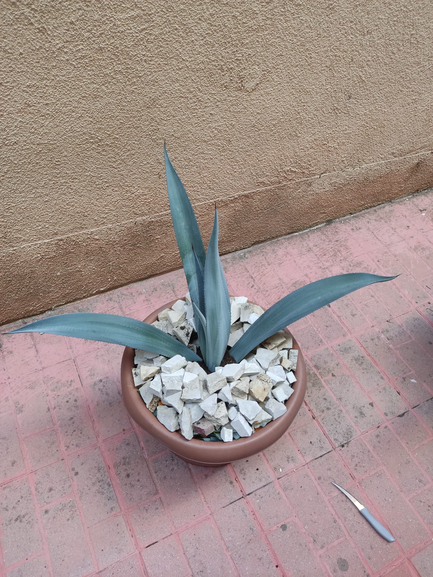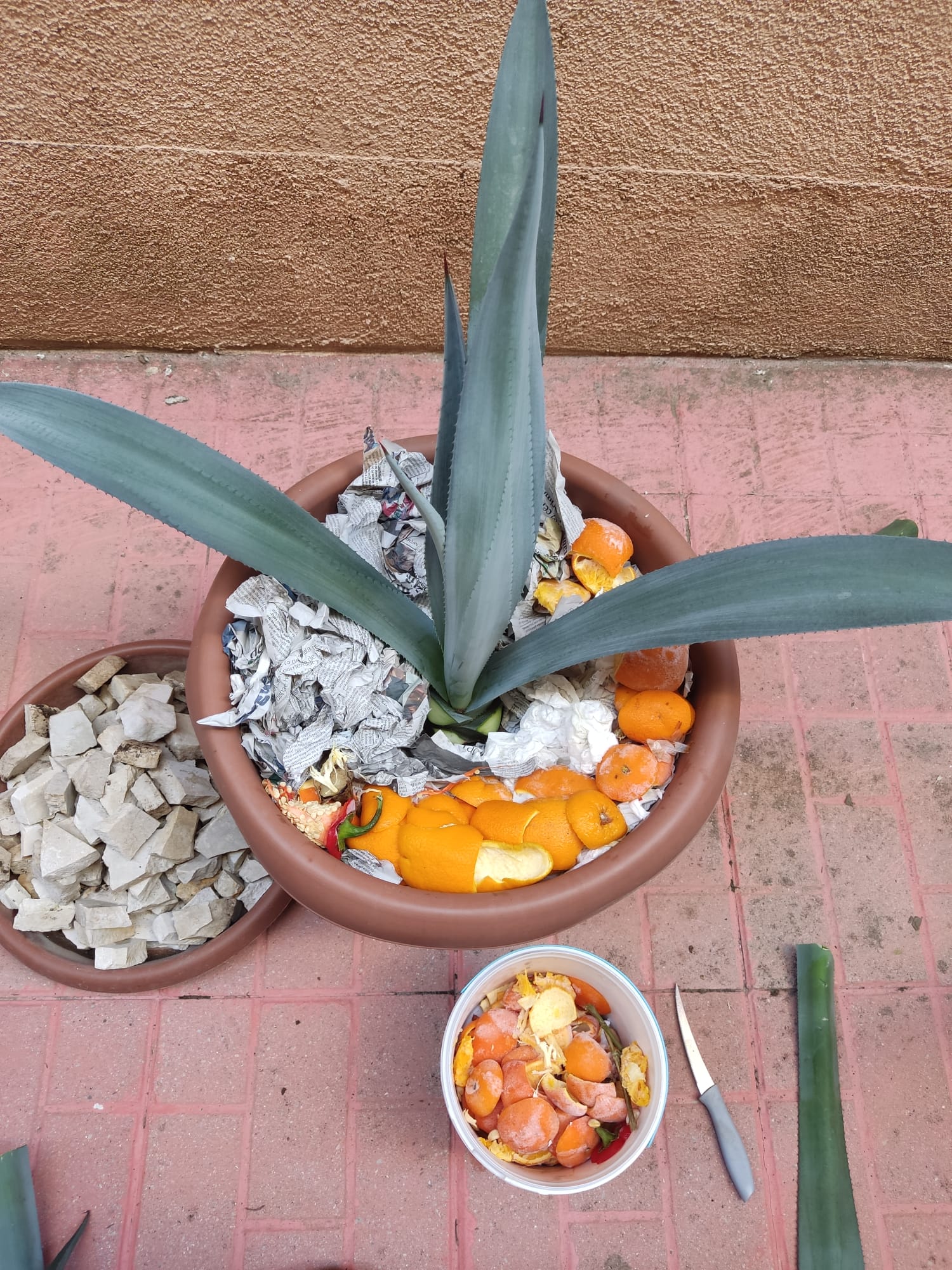 Es que no se si todavía quiero cortarlo porque parece que no se va a morir pero va super lento, increible. Además otra cosa que iba un poco contra cortarlo según mi filosofía es que luego tenía que desmontar la maceta entera para colocar la planta secundaria en el medio para que no se note que hubo una catástrofe.