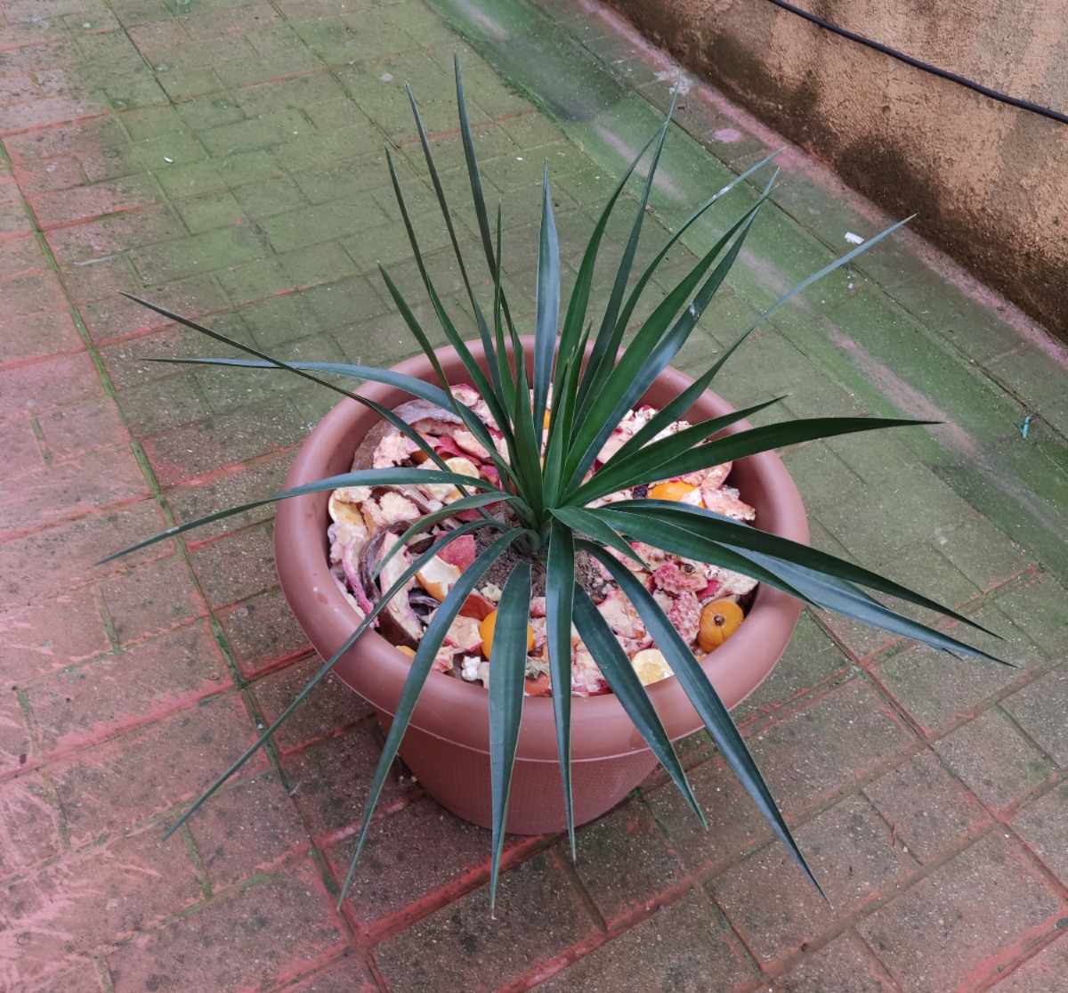Esa planta de hecho le puse la basura hace unos meses, ahora mismo no me acuerdo muy bien tendría que mirar las fotos pero puede que mas de 3 meses antes, y el estado actual es el de la siguiente foto: