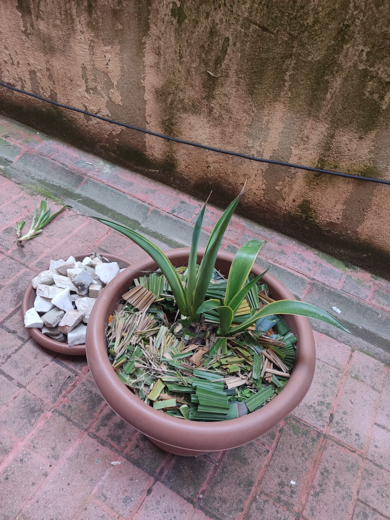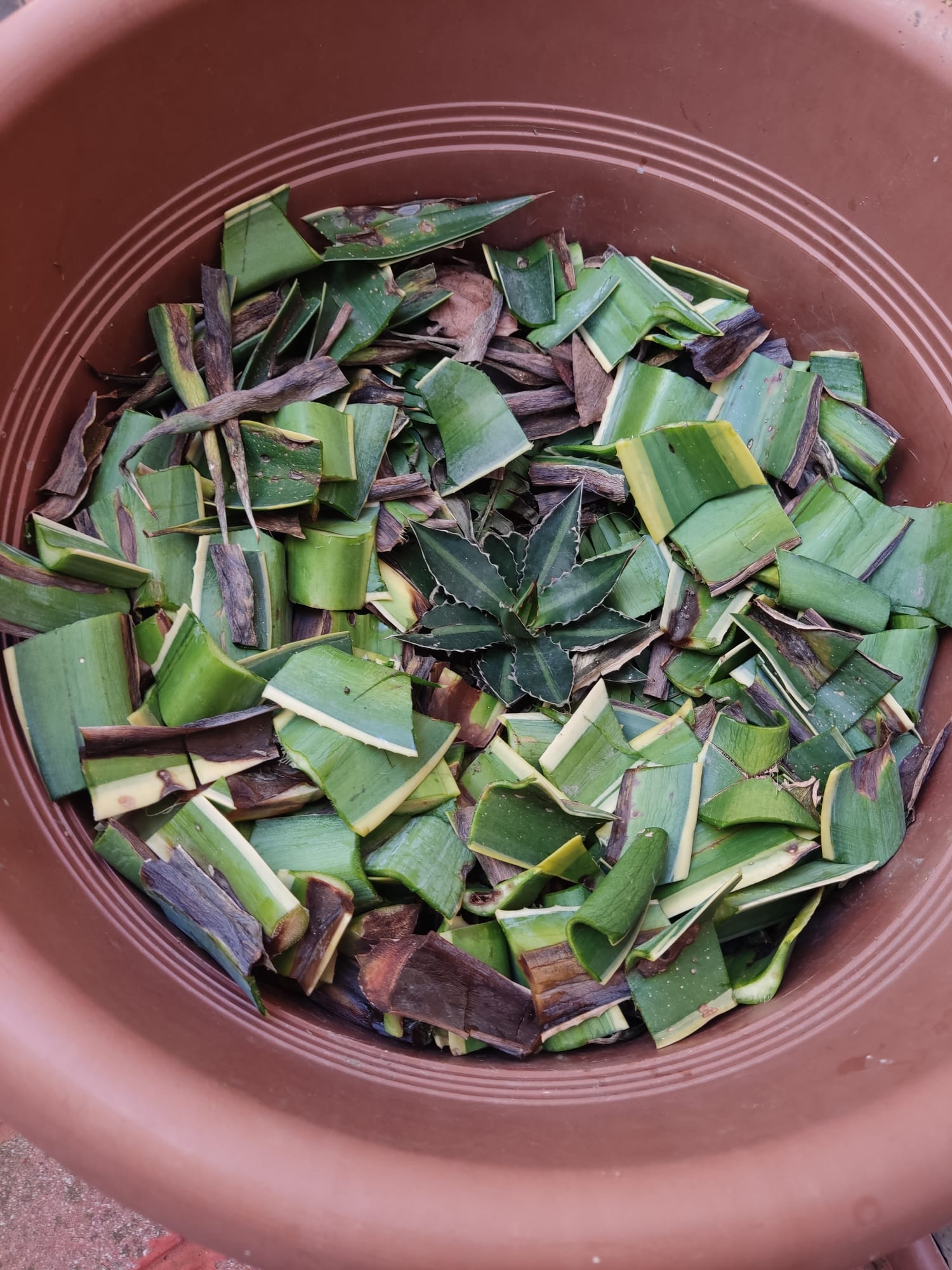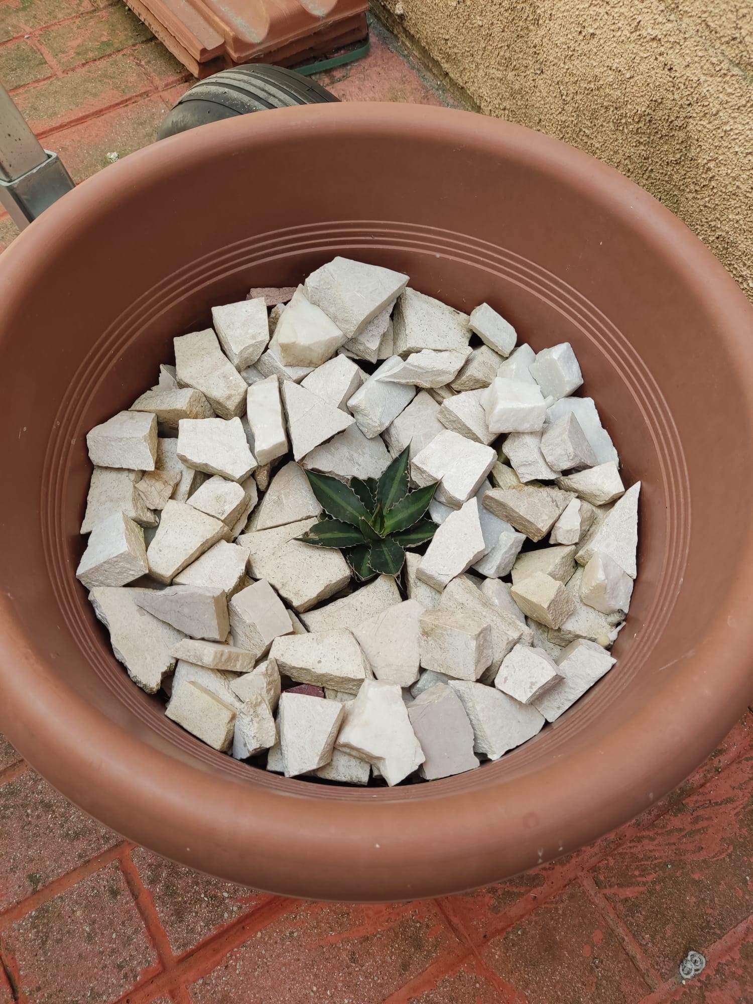 Le puse pues los restos mencionados, al final no quise colocarle nada mas por ser tan pequeña. No sabeis lo bien que olían las hojas cortadas de esa planta, me sorprendió porque los Agaves suelen oler un poco mal.