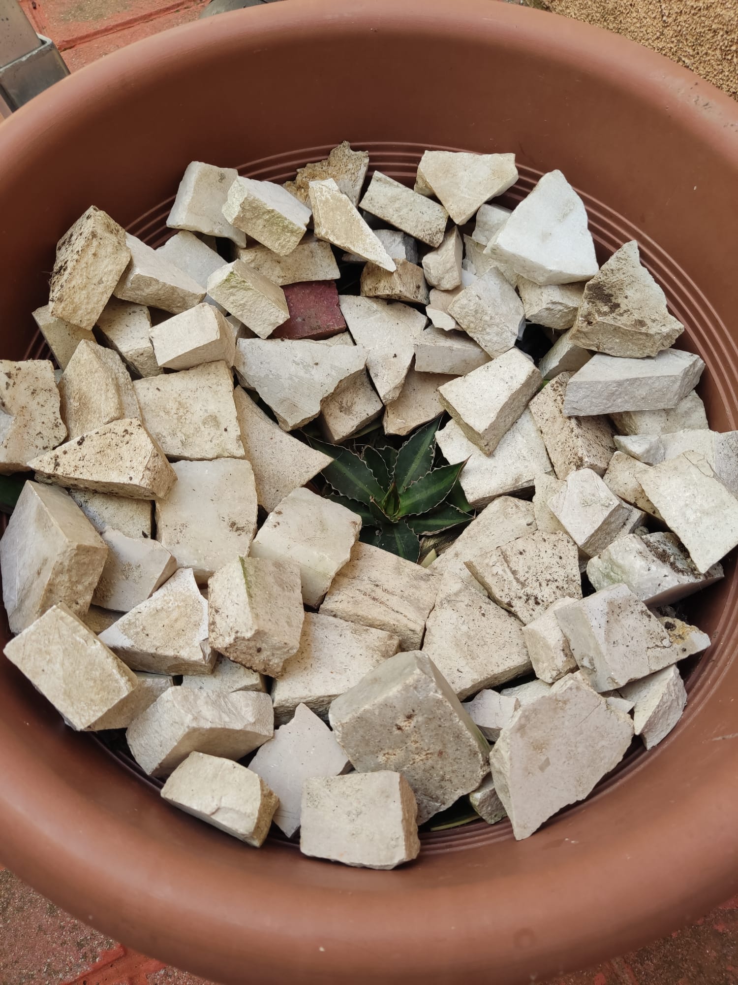 Le puse lo primero las cáscaras de huevo, eso para equilibrar un poco el PH y para darle salida a ese residuo, por lo visto sin tratarse tarda años en descomponerse y todo ese tiempo está equilibrando el PH que con tantos restos orgánicos va a ponerse bastante ácido.