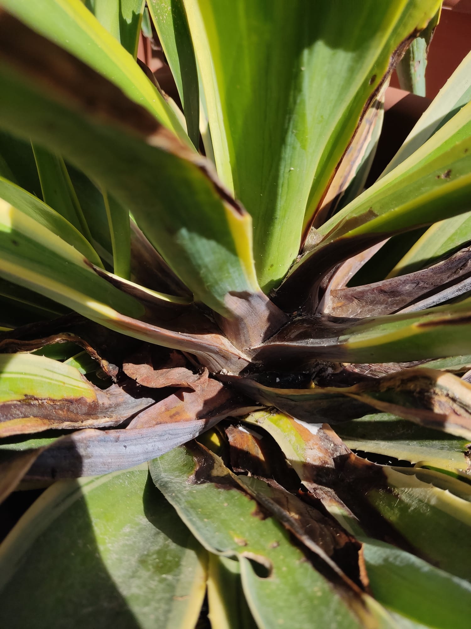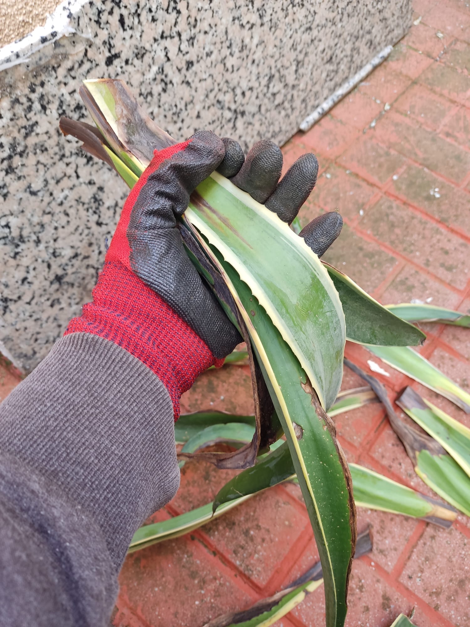 Bueno voy a compartir una incidencia de un agave que parece que le afectó mucho la nieve, y yo no me explicaba lo que pasaba. Al compartirlo hace días con personas mas cercanas parecía como que pensaban que era por haberles puesto basura pero a esta planta en concreto nunca le puse nada de basura porque estaba cerca de la pared y no era fácil de colocar.