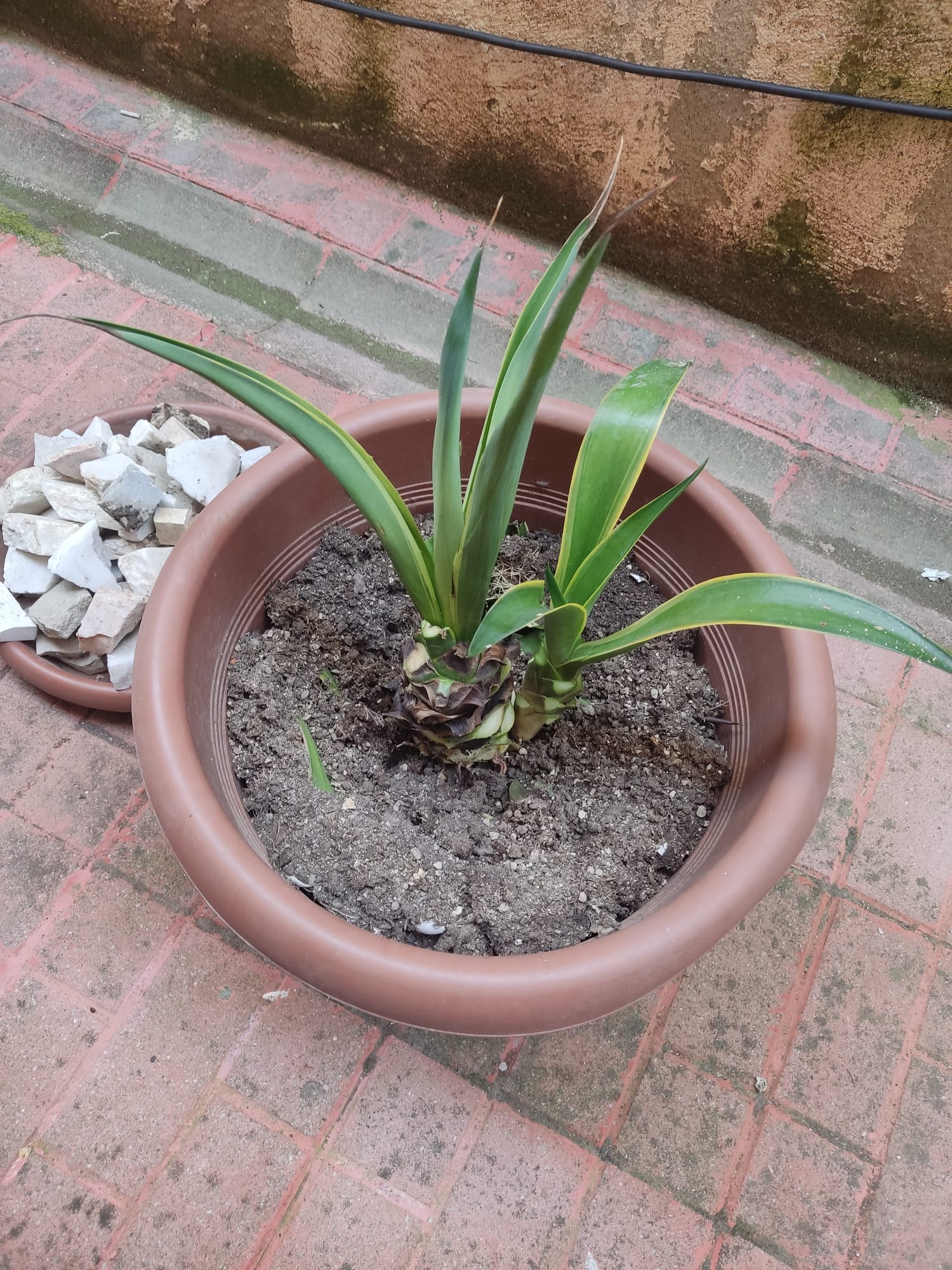 No me acuerdo que le puse, pero la tierra estaba bastante trillada por las lombrices igualmente seguro le puse muy poco de lo que fuera porque esta planta era bastante mas pequeña hace un año, quizás este año se ponga ya grande por fin.