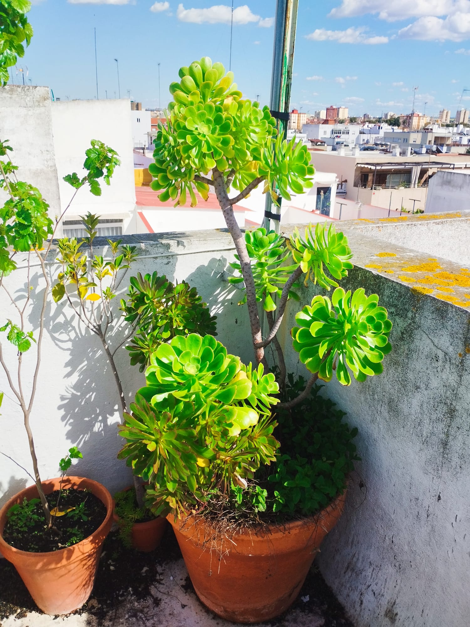 Entonces no tengo ni idea de si le haré mucho daño a esos aeoniums, quizás no tanto porque son solo dos plantas, y las hierbas buena realmente aguantan cualquier cosa digo yo.