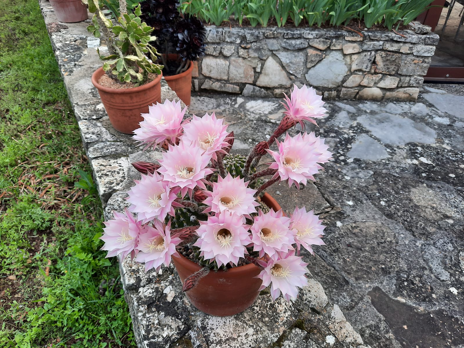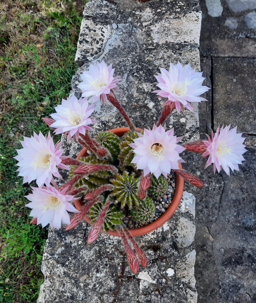 En unos de mis pocos cambios de casa, los antiguos propietarios, dejaron en una jardinera la madre de este ejemplar. Estaba enorme, con muchos hijos y me sorprendió su floración exuberante y efímera. En el invierno de 2001 una gran nevada y unas temperaturas bajo cero, lo diezmaron.